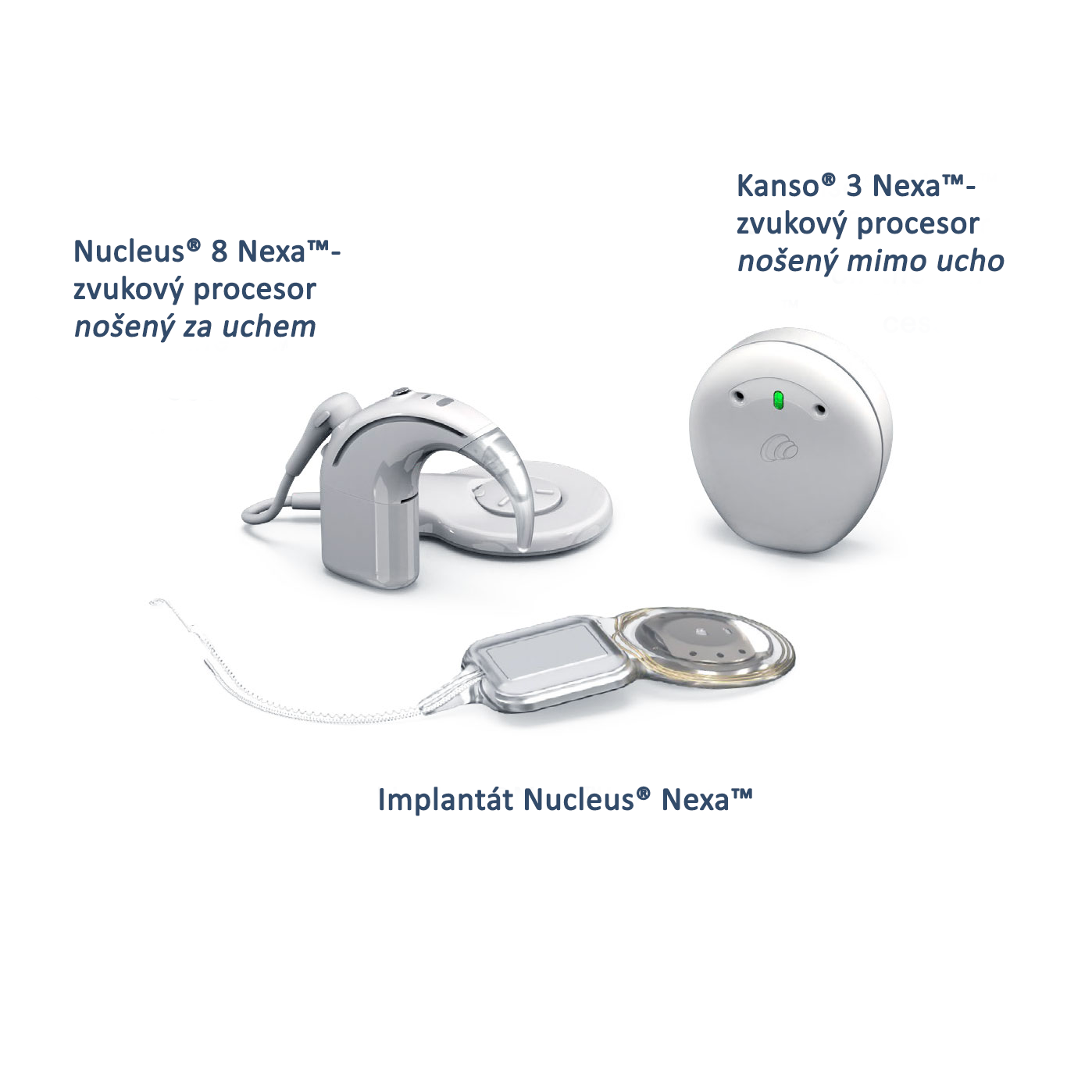 Kochleární implantáty napodobují funkci zdravého vnitřního ucha, nahrazují poškozené smyslové vláskové buňky a poskytují jasnější zvuk než sluchadla. Protože se smyslové vláskové buňky neregenerují, vyžaduje tato ztráta sluchu cílenou léčbu. Naše implantáty upřednostňují výkon a zachování kochleárních struktur. Chirurgové si mohou vybrat ze široké škály implantátů a elektrod podle typu ztráty sluchu, anatomie hlemýždě a preferencí. Systém Cochlear™ Nucleus® Nexa™ se skládá ze dvou hlavních součástí: externího zvukového procesoru a chirurgicky umístěného implantátu se svazkem elektrod zavedeným do hlemýždě.